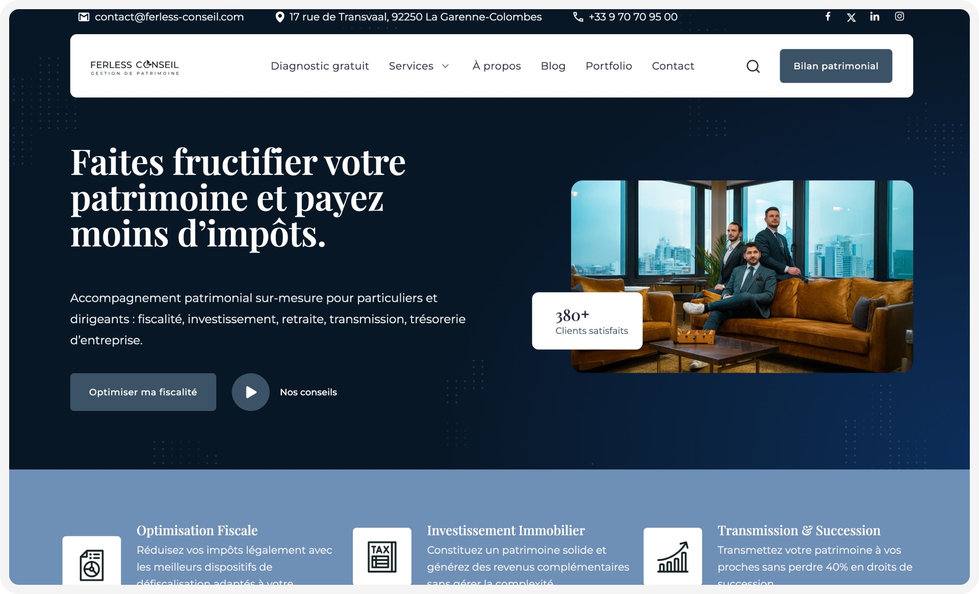 Une interface moderne et pro qui inspire confiance dès la première seconde.