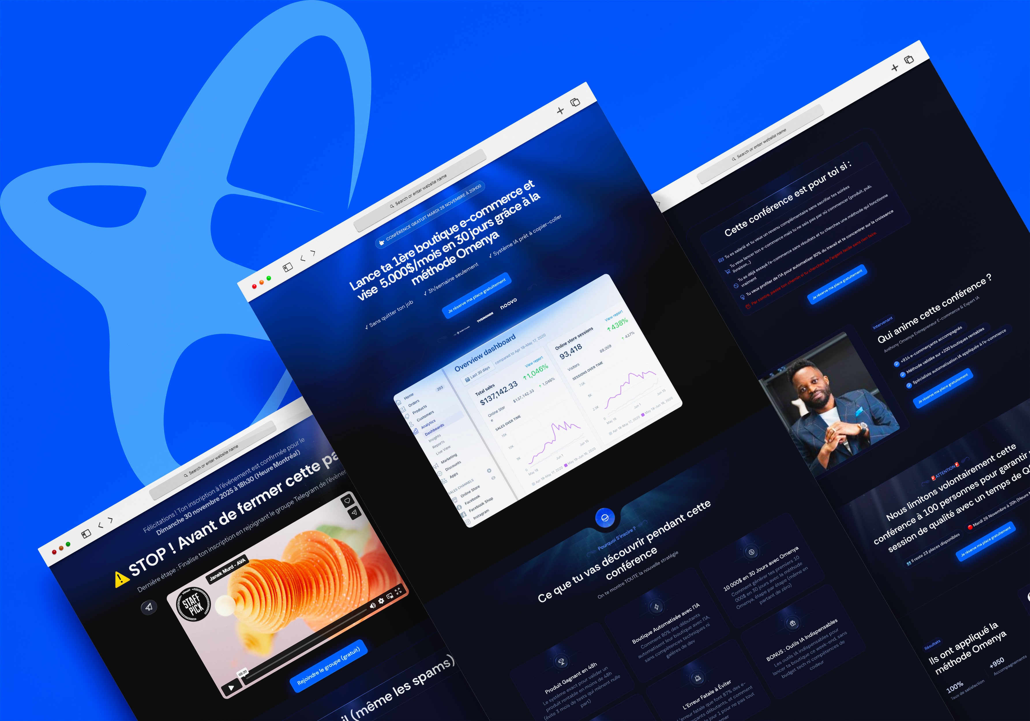 Omenya : Refonte complète du funnel webinaire pour le premier influenceur business au Canada (+200K abonnés). Copy, design et tracking repensés sur Framer — +300K$/mois générés.